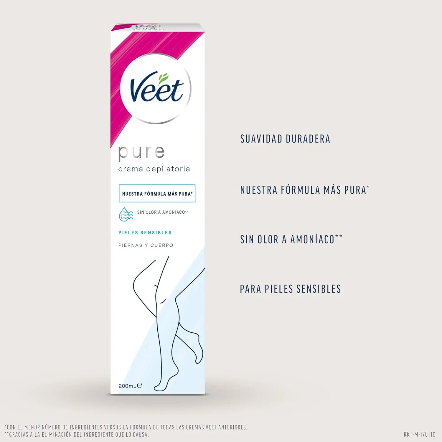 PACK de 6 - VEET Pure Crema Depilatoria Corporal Pieles Sensibles 200 ml Crema D